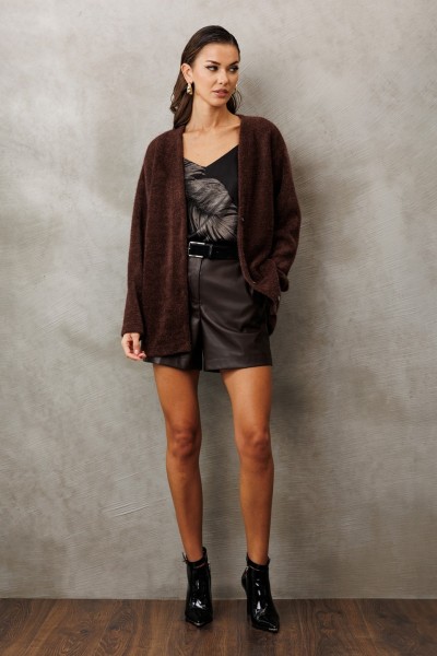 Эти стильные короткие шорты из экологической кожи черного цвета — идеальный выбор для современного гардероба. Модель на притачном поясе с шлевками предлагает классический крой с застежкой-гульфик и петлей-пуговицей для удобства и надежности. Шорты оснащены удобными карманами в боковых швах с наклонным входом спереди и элегантной вытачкой на спинке от пояса, что добавляет изделию аккуратности и женственности в силуэте.