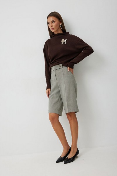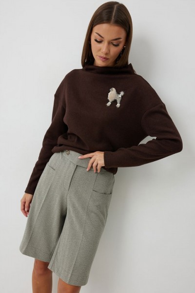 Блузон женский с цельнокроеной горловиной типа ""хомут"". Линия плеча и проймы спущены. Рукав втачной, одношовный. Блузон декорирован авторской брошью. Декоративные элементы и фурнитура могут отличаться от заявленных на фото. Цвет материала может отличаться по тону в зависимости от настроек вашего монитора!