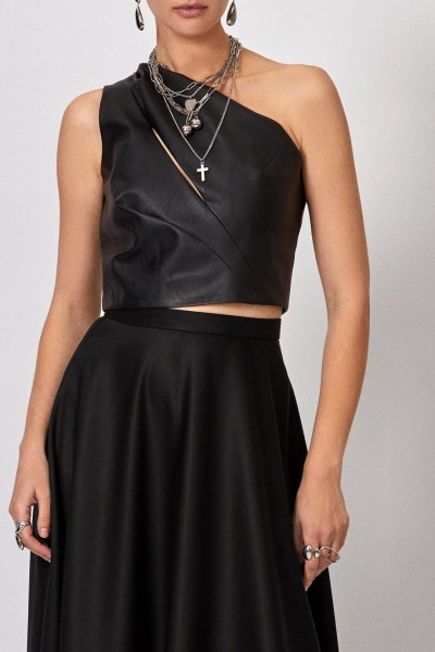 - спереди — диагональный вырез с декоративными складками: две сверху, одна снизу
