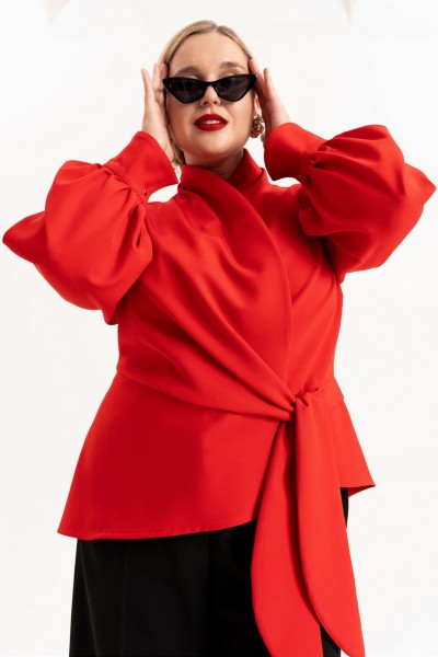 Оригинальная женственная блуза на запах с вырезом станет незаменимой вещью в Вашем гардеробе. Всесезонная блуза с длинными рукавами на манжетах легко впишется в Ваш повседневный, вечерний, а также деловой офисный стиль. Роскошная блузка сочетает в себе легкость и комфорт. Блуза с отрезной баской и воротником стойкой переходящей в борта. Застежка на потайную петлю и пуговицу и на завязки. Рукав длинный, втачной на манжете. По окату рукава обработаны складки. Вы сможете носить эту блузу не только летом, но и осенью, зимой и весной. Стильная женская блуза класса люкс соответствует модным тенденциям 2025-26 года. Ткань отлично тянется и обеспечивает идеальную посадку по фигуре. Мы уверены, что высокое качество Вас не разочарует! Широкий размерный ряд, включающий большие размеры, позволит Вам подобрать подходящий размер. Праздничная блузка скроет несовершенства фигуры, выгодно подчеркивая ваши красоту, женственность и индивидуальность. Элегантная и красивая блуза станет идеальным вариантом как для торжественных мероприятий: выпускной, корпоратив, свадьба, любой другой праздник, Новый год, так и для деловых и повседневных встреч, офиса. Нарядная модная блузка отлично подойдет для фотосессии, похода в театр и свидания. Сезоны, когда вы сможете ее носить: осень, зима, весна. Длина рукава (см): 62 Длина блузы (см): 67