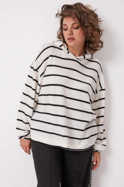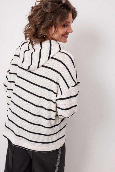 Худи - это несомненный фаворит сезона осень-зима! Модель уже давно перешла из спортивного гардероба в повседневный. Мы носим их с классическими и кожаными брюками, с джинсами и женственными юбками. Предлагаем Вам интересную, невероятно комфортную модель, выполненную из мягкого вискозного трикотажа в полоску, которая с лёгкостью впишется в гардероб, позволяя создавать множество многослойных образов.Линия плеча спущена. Манжета на эластичной резинке, позволяющей менять длину рукава. Объёмный, двойной капюшон прекрасно держит форму. Капюшон продублирован основной тканью. Шов спинки отделан киперной тесьмой.