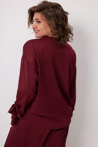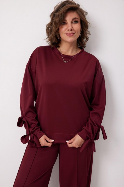 Удобный, стильный свитшот из мягкого, эластичного трикотажа позволит обратить на себя внимание и создаст отличное настроение! Трендовые цвета: мокко, индиго, вишня разбавят осеннюю хандру, позволив создать яркий дорогой образ. Свободный силуэт модели подарит чувство уюта и комфорта. Декоративная отделка пришивными бантами из основного материала с необработанным срезом добавляет шарм его обладательнице. Горловина полукруглой формы, с открытым срезом, обработана притачной обтачкой из основного материала. Рукав втачной, со спущенной линией плеча и манжетой по низу. Низ изделия обработан обтачкой имеет форму полукруга. Для создания комплекта дополните свитшот брюками арт. 6071.