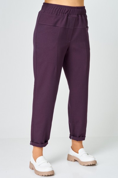Эти стильные женские брюки выполнены в глубоким благородном оттенке тёмной сливы — цвете, который придаёт образу элегантность и легко сочетается как с базовыми, так и с яркими вещами гардероба.