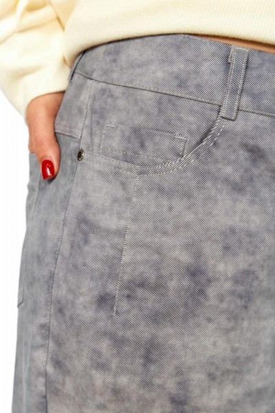Брюки женские, изготовлены из хлопковой костюмной ткани под джинс. В брюках обработан пояс, застежка на тесьму-молнию и петлю-пуговицу. На задней части брюк кокетка и накладные карманы. На передней части боковые карманы.