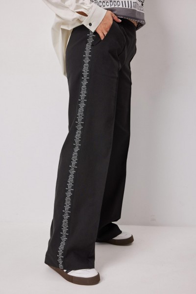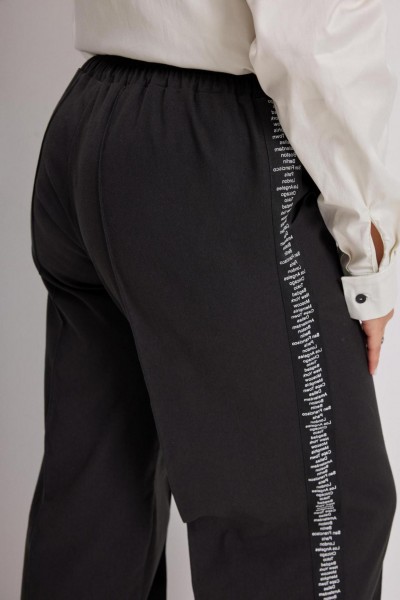 Брюки свободного кроя из тактильно приятной растяжимой джинсовой ткани - это модель которая необходима в гардеробе каждой модницы. Изюминка данной модели - настроченные декоративные ленты с текстовым принтом, что позволяет удлинить ножки благодаря акцентной вертикали в виде лент. Брюки подарят невероятный комфорт в носке благодаря отличной посадке. Пояс на резинке, с островком. Для Вашего удобства выполнены карманы хулиганы. Низ брюк обработан подгибкой. Предлагаем дополнить образ блузой 4136, худи 4137.