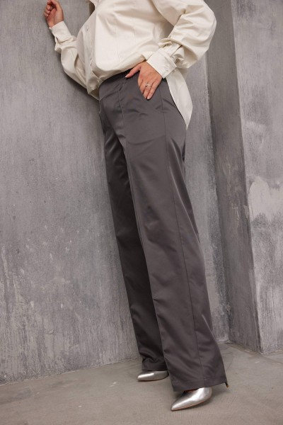 Удобные, широкие брюки - актуальная модель, в которой Вам будет комфортно на протяжении всего дня! Они помогут при создании современного расслабленного образа. Базовый оттенок графита гармонично впишется в гардероб, позволяя создавать различные образы.