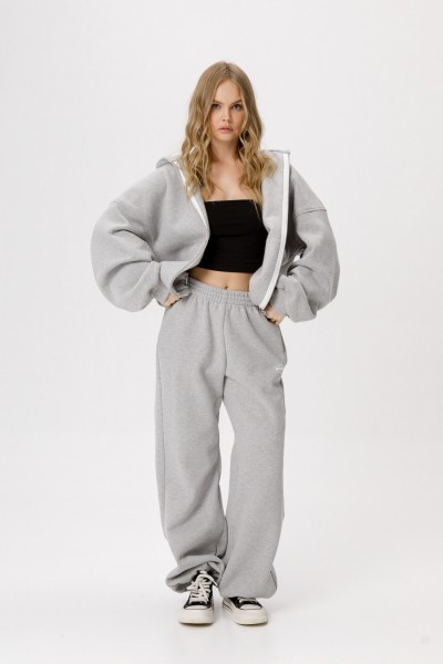 Детали: брюки широкие с рельефными швами и регулировкой по низу, боковые карманы. На передней части нанесен небольшой фирменный логотип.