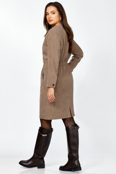 Платье полуприлегающего силуэта из мягкой, комфортной штруксовой ткани. Рукав спущенный, длинный, на манжете с застёжкой на 1 петлю и 1 пуговицу, разрезом. Горловина круглая, застёжка на тесьму-молнию контрастного цвета до талии. По талии подрез, по бокам спереди вставлена резинка, верхняя часть платья имитирует бомбер. Карманы- наклонные листочки, расположены на уровне бёдер по переднему полотнищу юбки, на левой листочке настрочена нашивка контрастного цвета. Перед платья с декоративными подрезами и отстрочкой. Спинка отрезная по талии, на резинке, со средним швом и разрезом по низу.