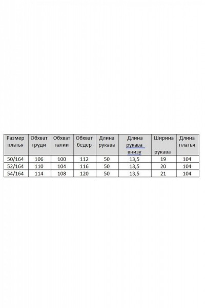 Нарядное платье А- силуэта, без подкладки. Округлый вырез горловины обработан бейкой. Перед с фигурным подрезом и разрезом по низу. По правой стороне переда легкая драпировка с декоративной пряжкой и двумя вырезами. Рукав втачной, двухшовный с вертикальным разрезом в локтевом шве. Спинка со средним швом и застежкой сзади на потайную тесьму-молнию. Длина рукава от горловины- 50 см, длина по синке-104 см.
