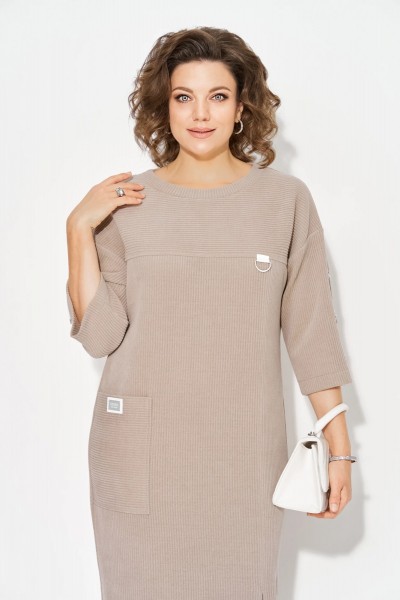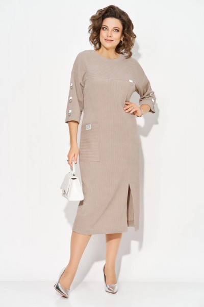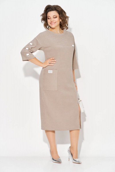 Эффектное платье выполнено из трикотажного штрукса, создано для тех, кто ценит комфорт в повседневной жизни. Модель полуприталенного силуэта со спущенной линией плеча. Рукав длиной3/4-ти украшает ряд декоративных полуколец. Вырез горловины округлый, на мягкой планке. Полочка с отрезной кокеткой и ассиметричным рельефом, переходящим в разрез на свободу движения. Ассиметричный накладной карман украшает декоративная нашивка.