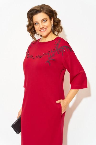 Трикотажное платье алого цвета подчеркнет Вашу женственность и добавит образу смелости! Материал, из которого выполнена модель - мягкий, комфортный и теплый! Силуэт платья прямого кроя, с рукавом длиной ¾-ти на спущенном плечевом поясе. Вырез горловины округлый, на мягкой планке. По бокам расположены разрезы на свободу движения. Изюминка данной модели- очаровательная печать накат с мерцающим эффектом украшенная бусинами и жемчугом. Такое платье можно носить с высокими сапогами, батальонами и даже с туфлями на каблуке. Добавьте к нему крупную бижутерию, кожаный ремень или перчатки - и создайте по истине элегантный и стильный образ! Длина по спинке – 115 см, рукав – 35 см.