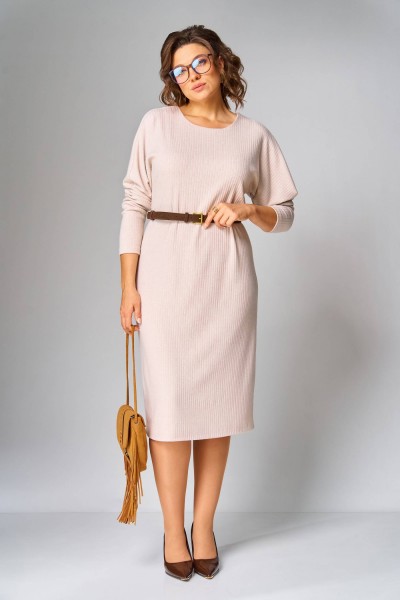 Платье женское полуприлегающего силуэта, цельнокроеного покроя рукава, выполнено из трикотажного полотна в рубчик.