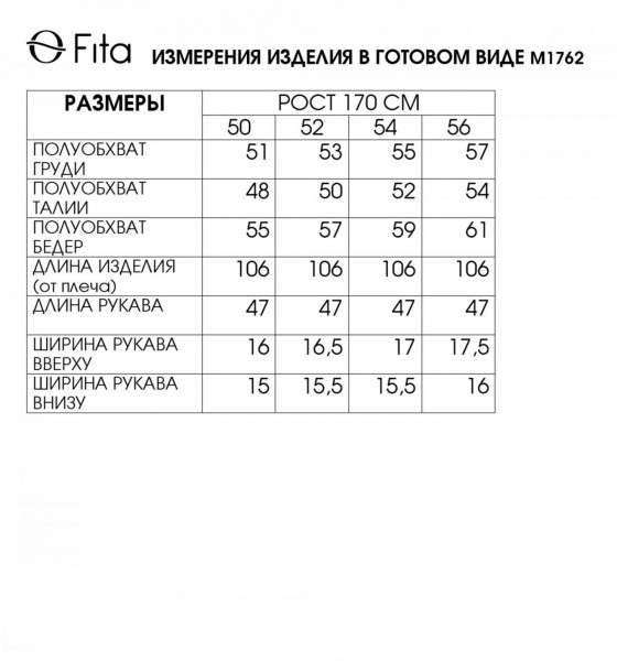 таблица размеров