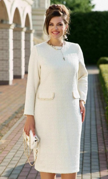 Безумно красивое и элегантное платье в модном оттенке «сливочного масла» мягко обволакивает фигуру, создавая тем самым шикарный образ. Его стиль, утончённость делает женщину поистине роскошной. Платье идеально подойдёт как для повседневной носки, так и для торжественных выходов, подчеркивает достоинства фигуры и успешно скрывает все недостатки. Платье прилегающего силуэта с округлой горловиной с отделкой в виде декоративной отделочной тесьмы. По переду платья нагрудные вытачки, отделочные клапана карманов с декоративной отделкой в виде тесьмы. По спинке застёжка на декоративную тесьму-молнию. Рукав в платье втачной, длинный. Платье на подкладке.