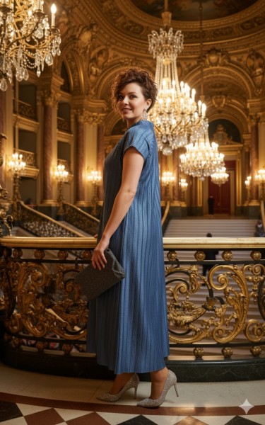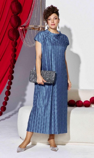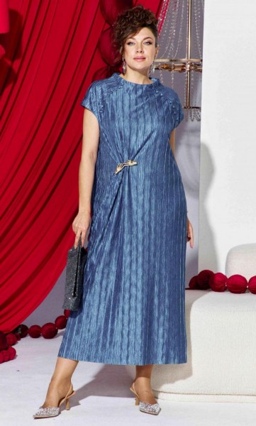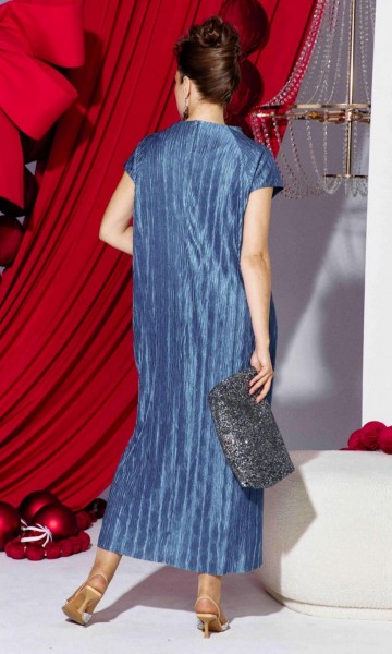 Платье прямого силуэта из фактурной ткани с крэш-эффектом, который создает в силуэте вертикальные заломы визуально вытягивающие фигуру и придает модели выразительный образ. Короткий рукав-реглан с навесными петельками и пуговицами, обтянутыми основной тканью рисует линию рельефа по переду и спинке сужая плечевой пояс. Платье на подкладке мягкое и удобное в движении. По спинке в среднем шве короткая потайная молния.