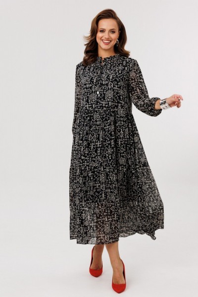 Стильное женское платье свободного силуэта, выполнено из плательной шифоновой ткани (не тянется) с дизайном «Геометрия», на подкладке (тянется).