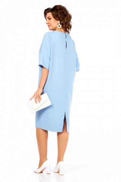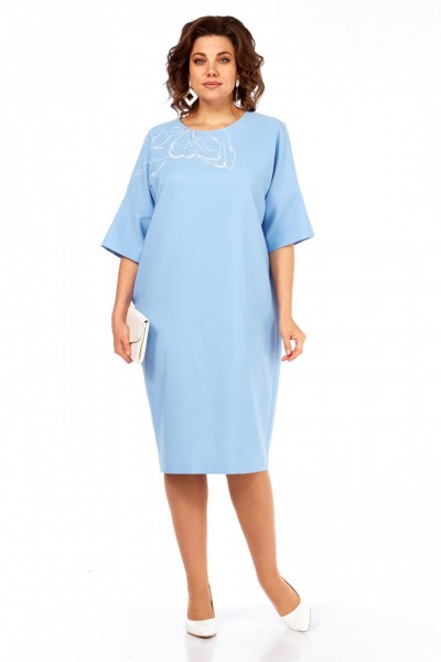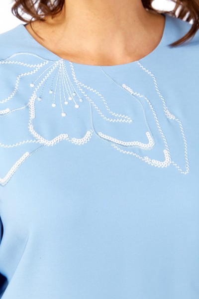Платье женское, нарядное свободного силуэта. Выполнено из ткани костюмно-плательного ассортимента. Горловина округлой формы. Перед цельнокроеный дополнен дизайнерской вышивкой. Спинка со средним швом в котором обработана застежка на навесную петлю и пуговицу. Рукав спущенный.
