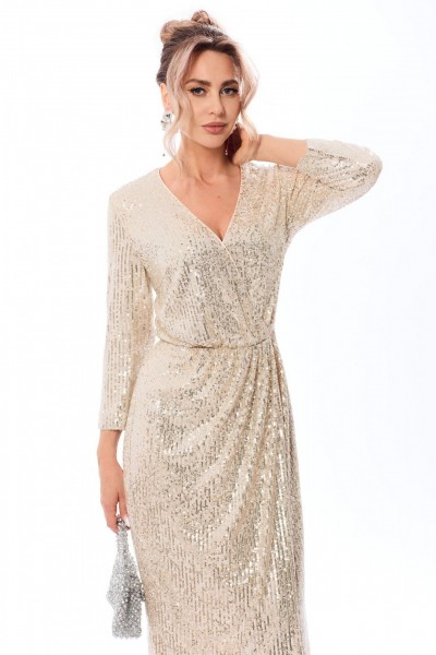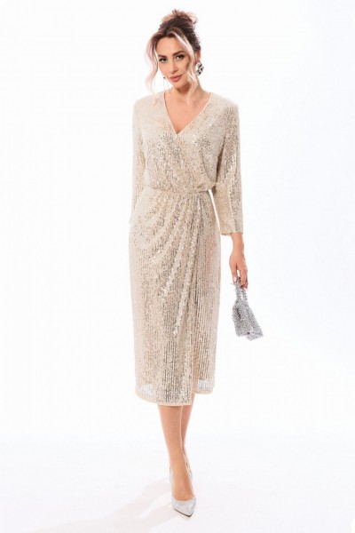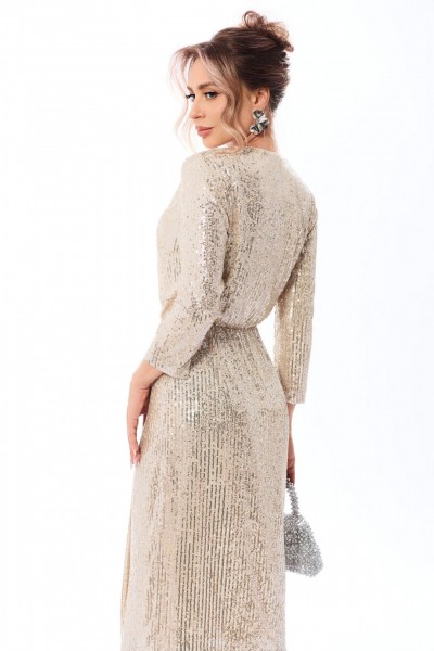 Цветовая гамма для верха, подкладки, фурнитуры, отделки: платье из ткани с пайетками, в одной цветовой гамме.