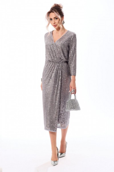 Цветовая гамма для верха, подкладки, фурнитуры, отделки: платье из ткани с пайетками, в одной цветовой гамме.