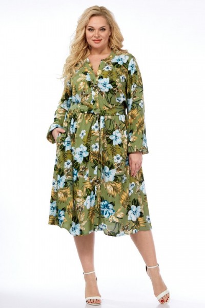 Платье выполнено из мягкой штапельной ткани устойчивой окраски.
