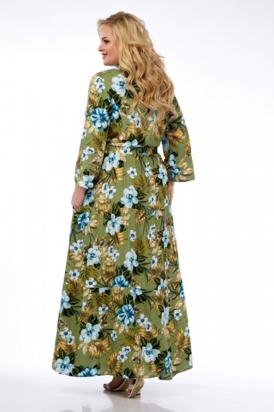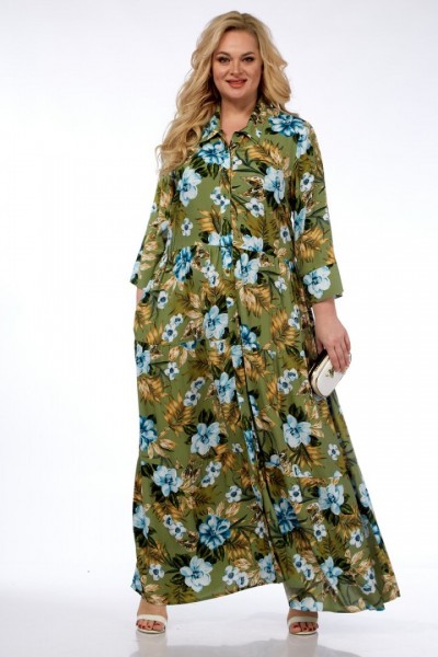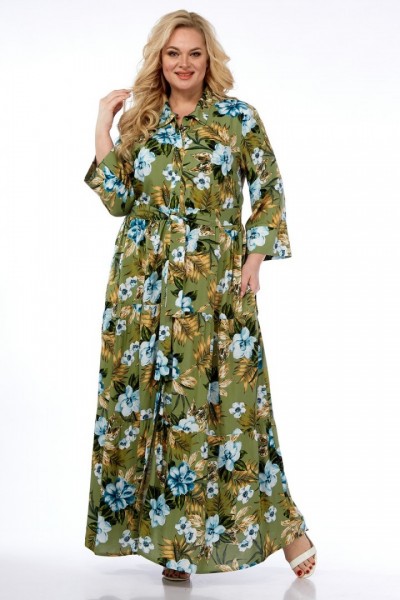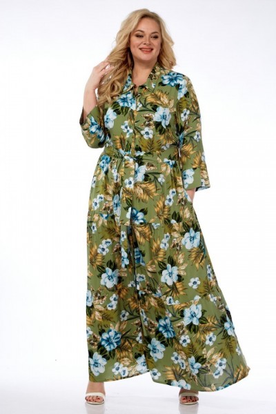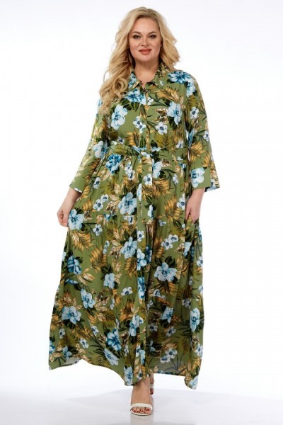 Платье выполнено из мягкой штапельной ткани устойчивой окраски.