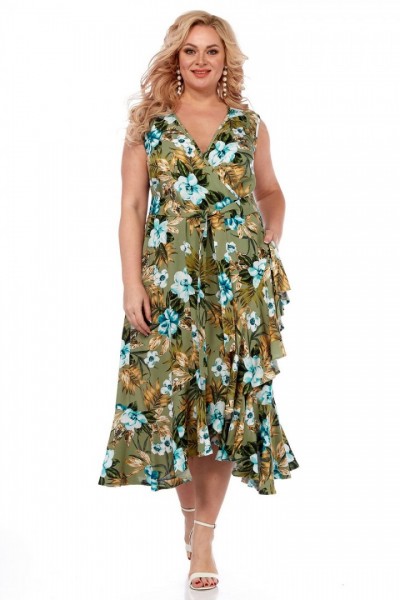 Платье выполнено из мягкой штапельной ткани устойчивой окраски. Рекомендуется вертикальная сушка.