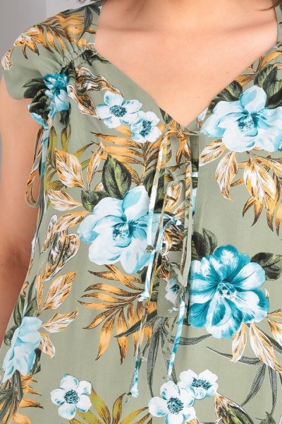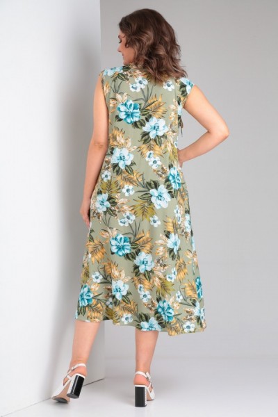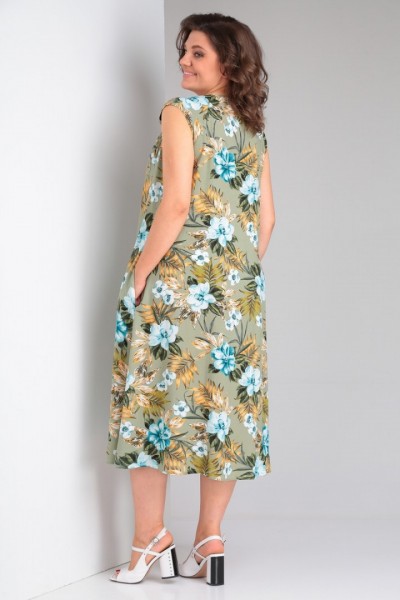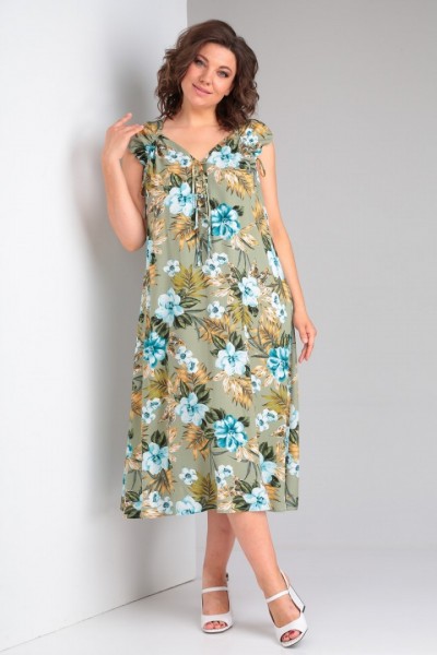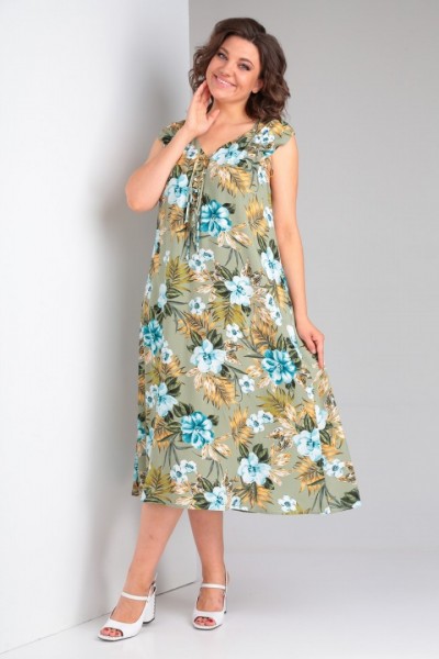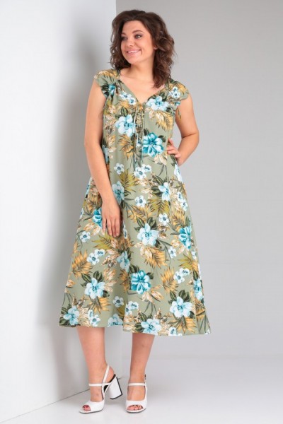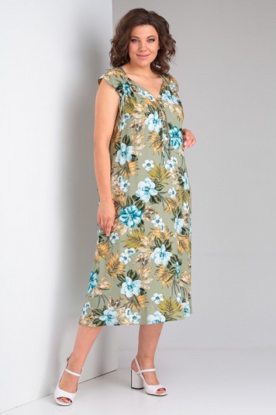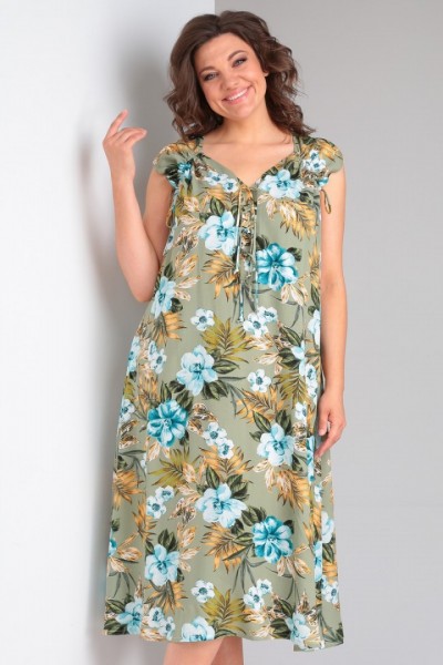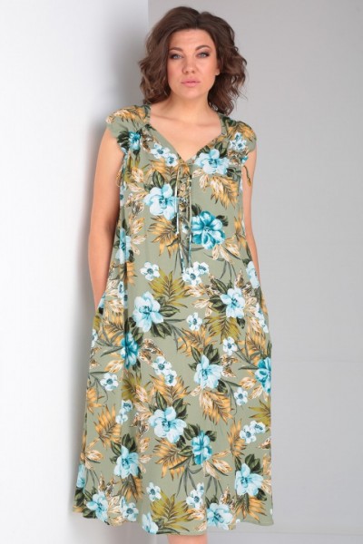 Платье выполнено из мягкой штапельной ткани устойчивой окраски. Рекомендуется вертикальная сушка.