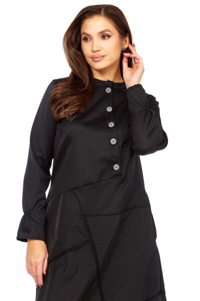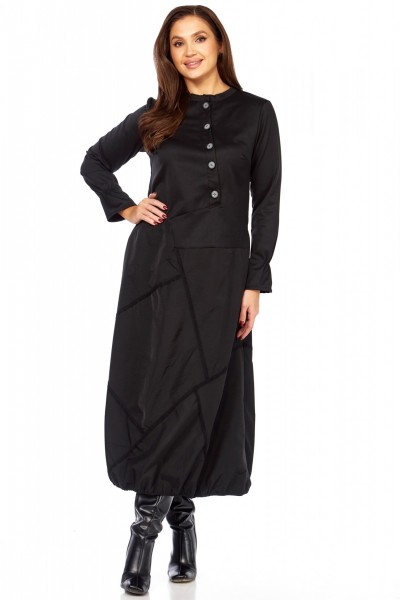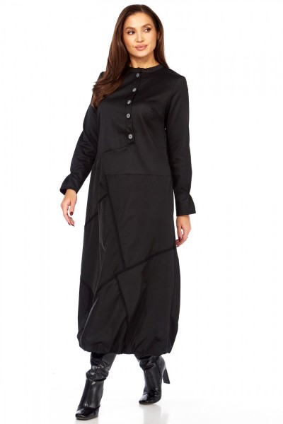 Выполненное из мягкой, струящейся ткани глубокого черного цвета, это платье не только выглядит эффектно, но и дарит невероятный комфорт в движении. Свободный крой идеально скрывает все, что нужно скрыть, и подходит для любого типа фигуры, позволяя вам чувствовать себя уверенно и свободно.