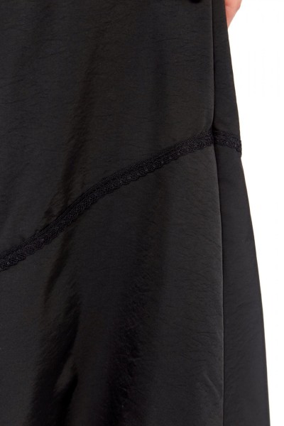 Его главная изюминка – уникальный асимметричный крой юбки, где каждый элемент расположен под неожиданным углом. Виртуозное сочетание деталей создает эффект легкости и непринужденного шика, а декоративное кружева подчеркивают архитектурность силуэта.