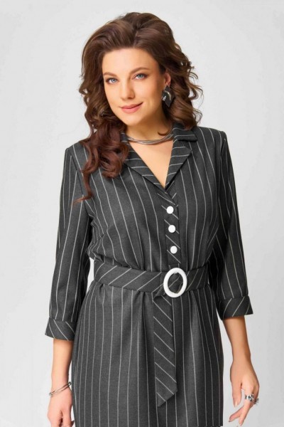 Прямой силуэт, текстиль с шерстью, архитектурные линии — ""Славянка"" объединяет эстетику прошлого и комфорт настоящего. Однобортная застёжка на отрезной планке, лацкан, отложной воротник и съёмный пояс создают образ интеллигентной женственности. Манжеты с застёжкой и декоративные элементы — как штрихи ручной работы, придающие платью характер.