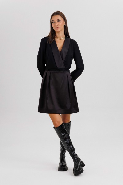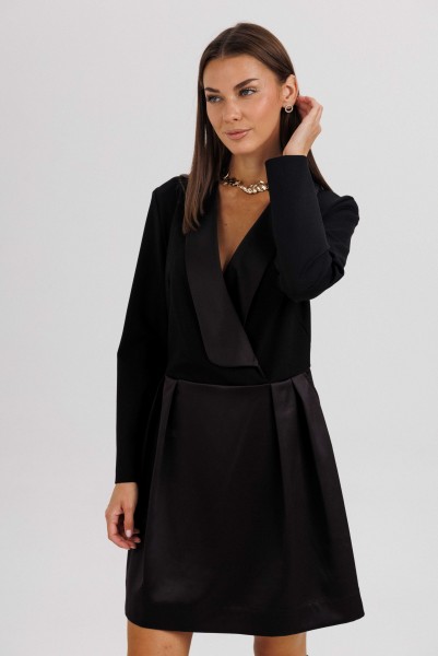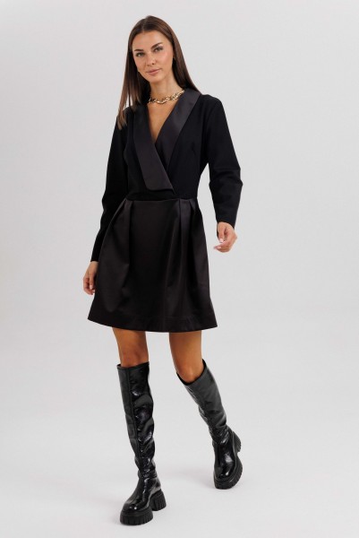 Элегантное платье прилегающего силуэта, созданное для тех, кто ценит стиль, утончённость и безупречное исполнение. Втачной крой гармонично подчеркивает фигуру, а акцентная отделка из атласного полотна придаёт образу изысканный блеск.