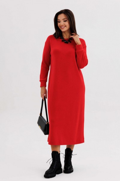 Мягкая фактура ткани приятна к телу и подходит для любого сезона. Насыщенный красный цвет подчёркивает женственность и уверенность, а минималистичный стиль позволяет комбинировать платье с различными аксессуарами и обувью — от классических туфель до ботильонов.