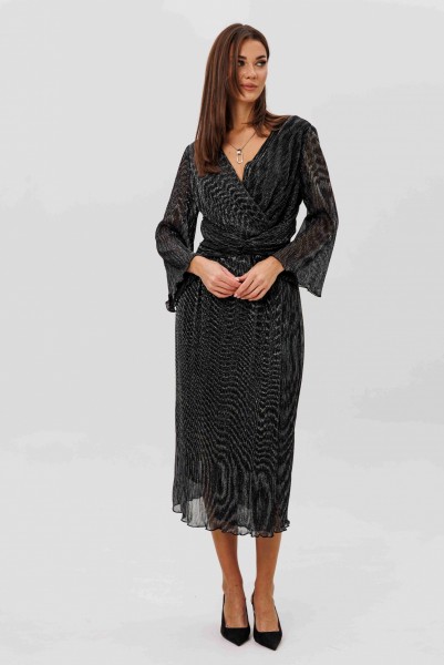 Женственный силуэт, подчеркивающий линию талии, и невероятная фактура гофрированного полотна делают эту модель не только изысканно-красивой, но и мега удобной.