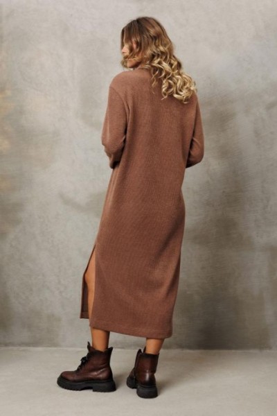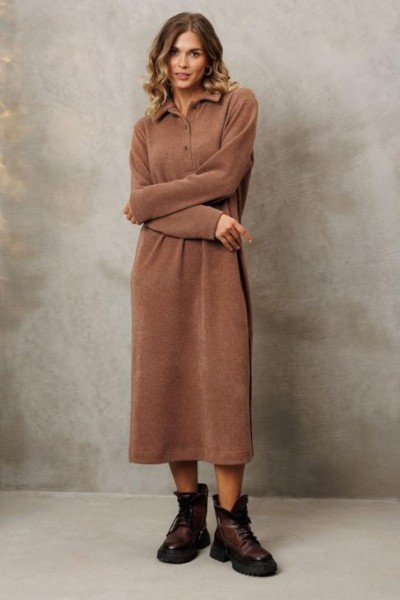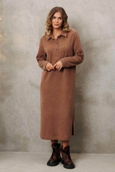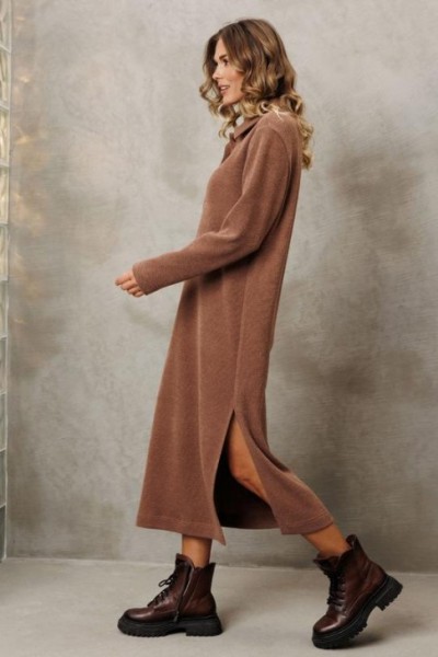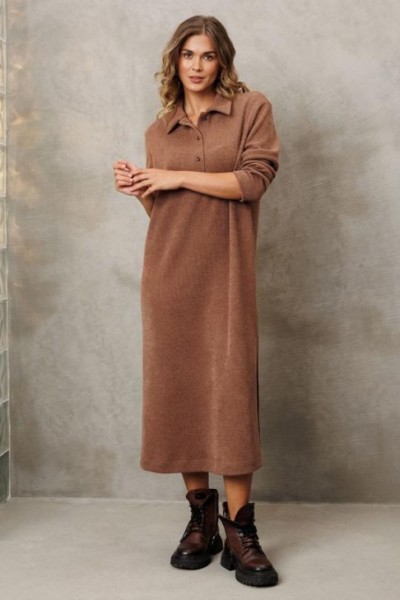 Платье прямого силуэта с воротником поло из теплого трикотажного полотна. Рукав втачной одношовный.