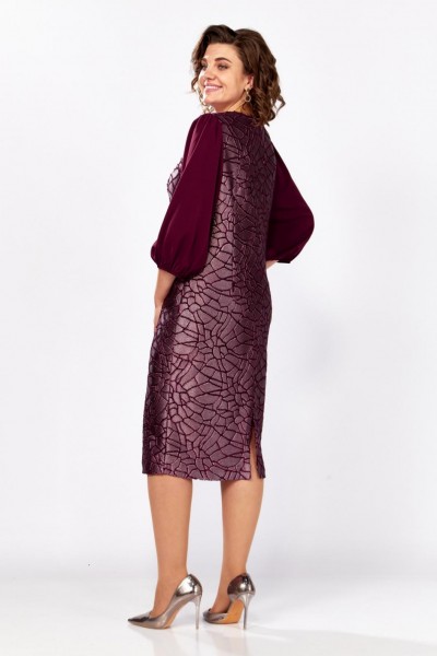 Нарядное женское платье, полу-прилегающего силуэта, выполнено из ткани с вытравкой и тонкого текстиля. Горловина платья V-образной формы, на обтачке, по линии талии отрезное, с втачным поясом из тонкого текстиля, на поясе заложены складки. Юбка платья прямого силуэта, спинка выполнена из основной ткани. Рукав втачной, присборен по низу на резинку. Спинка выполнена из основной ткани, со средним швом и вытачками. Эффектное платье из нарядной ткани дополнит ваш образ! Длина 1108 см. в 58р. Ширина груди- 59см, Ширина талии -54см, Ширина бедер- 64см, длина рукава- 49см, ширина рукава 27см