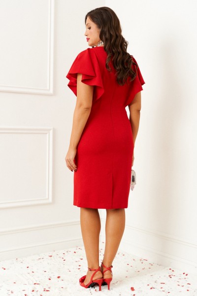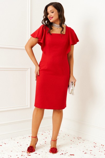 Платье прилегающего силуэта средней длины выполнено из костюмного смесового полотна.