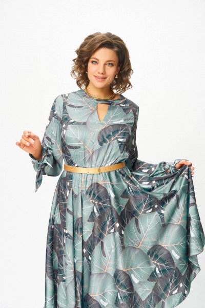 Цвет: Принт «тропические листья в светло-бирюзовых и тёмных оттенках»