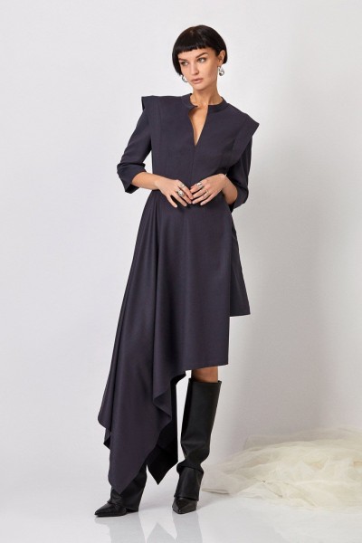 - асимметричный низ со складками от талии и высоким разрезом в левом боковом шве до линии талии