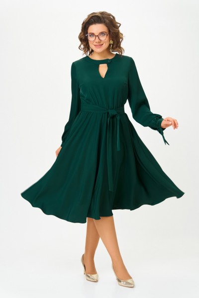 Платье из поливискозного полотна Х-образного силуэта, отрезное по линии талии.