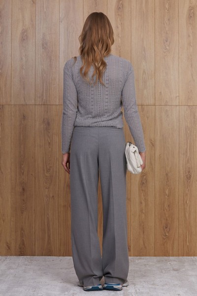 Джемпер прямого силуэта, немного заужен книзу, выполнен из мягкого и комфортного трикотажного полотна. Ажурная ткань с бархатистой поверхностью и очень приятная к телу. Перед и спинка изделия прямые. Чуть спущенная линия плеча. Втачной длинный рукав. Горловина высокая двойная стойка.