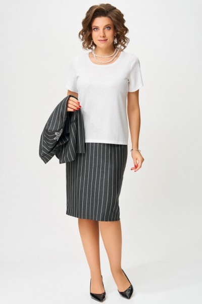 Джемпер "Веяна" — сияние мягкости. Легкая трикотажная ткань, украшенная люрексовой нитью, словно ловит свет и отражает его мягким блеском. Прямой силуэт с вытачками подчёркивает фигуру, а комфортная изнанка дарит ощущение нежности на коже. Финишные акценты — тонкая планка горловины и утончённая обработка низа — делают образ завершённым.