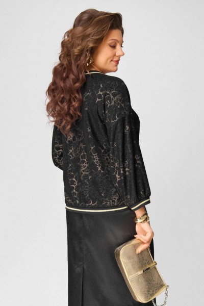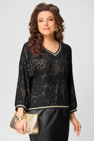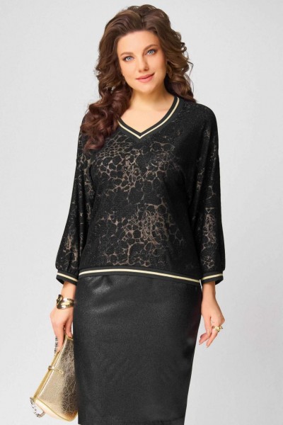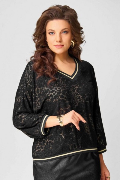Нарядный джемпер ""Ираида"" свободного покроя выполнен из мягкого трикотажного полотна с декоративной сеткой, создающей эффект многослойности и воздушности.