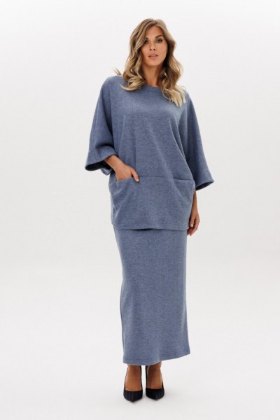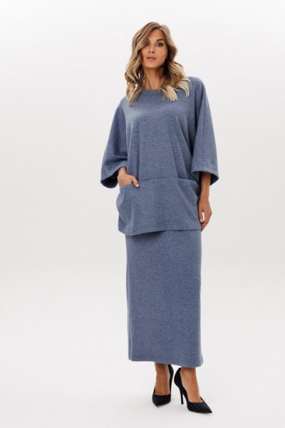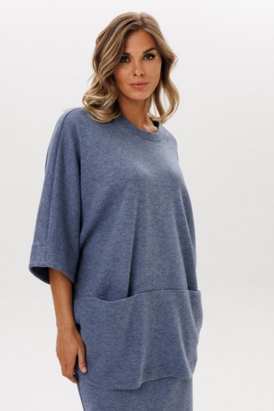 Джемпер выполнен из трикотажного полотна. Джемпер О-образного силуэта, длиной до линии бедер. Спереди карманы в шве. Горловина округлой формы. Рукав цельнокроенный, состоит из передней и задней частей, длиной ниже линии локтя.