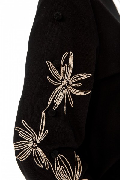 Элегантный женский джемпер черного цвета, созданный для комфорта и стиля. Изготовлен из мягкого трикотажного полотна, дизайн этой модели предусматривает цельнокроеную переднюю часть и спинку. Круглая горловина дополнена классическим вырезом, обеспечивая лаконичную и одновременно изысканную эстетику. Рукава длинные, втачные, привлекают внимание оригинальными декоративными элементами в виде вышивок с цветочными мотивами и изящных помпонов, размещенных на нижней части рукавов. Детали: - Длина джемпера по спинке: 69 см - Длина плеча: 10 см - Длина рукава: 62 см - Доступные размеры: - Размер 52: ПОГ 56 см, ПОБ 60 см - Размер 54: ПОГ 58 см, ПОБ 62 см - Размер 56: ПОГ 60 см, ПОБ 64 см Обратите внимание, что цвет на экране может отличаться от реального цвета изделия. Данный джемпер является прекрасным выбором для создания как повседневных, так и более элегантных образов.