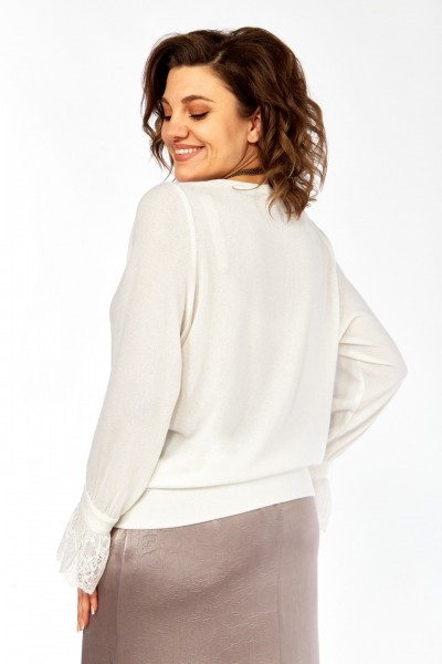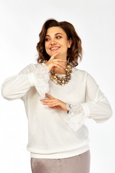 Очаровательный женский джемпер, выполненный из мягкого трикотажного полотна с нежным сиянием, придающим элементы изысканности. Это изделие представлено в спокойном светлом оттенке, который отлично подойдет для создания разнообразных нарядных и повседневных ансамблей. Цельнокроеные перед и спинка джемпера подчеркивают гармоничный силуэт. Классическая круглая горловина и втачные рукава обеспечивают комфортное прилегание. Особую изысканность модели придает декоративное кружево на рукавах и дополнительные элементы по низу изделия. Притачная деталь у низа джемпера добавляет аккуратности общему образу. Длина джемпера — 67 см, длина рукава — 63 см. Доступен в размерах 50, 52, 54 и 56 с различными параметрами для подходящей посадки. Обратите внимание, цвет изделия на экране может незначительно отличаться от фактического. Этот джемпер станет идеальным выбором для тех, кто ценит элегантность и комфорт в одежде.