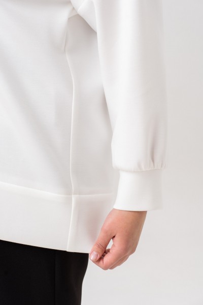 Позвольте себе насладиться комфортом и стилем с нашей туникой, которая станет вашим незаменимым спутником. Этот стильный свитшот предполагает легкость и свободу движений, что делает идеальным для повседневной носки и прогулок на свежем воздухе. Изготовленный из качественного трикотажа, он обеспечивает дышащие свойства и гипоаллергенность, что особенно важно для женщин с чувствительной кожей. Туника с круглой, асимметричной горловиной и манжетами на запястьях добавляет образу женственности и утонченности. На полочке обработана нефункциональная, декорированная пуговицами планка. На спинке, в среднем шве, обработана потайная молния.Она легко сочетается с различными аксессуарами,юбкой,брюками и разной обувью, что дает возможность создавать разнообразные образы.