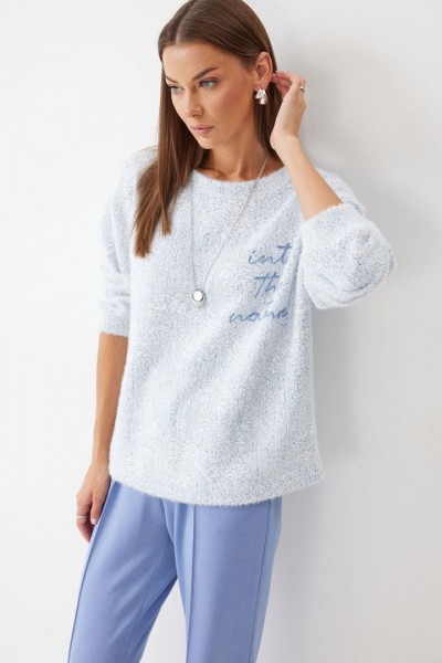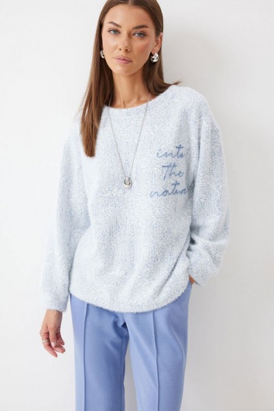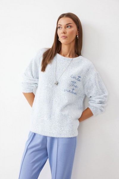 Джемпер прямого силуэта из комфортного трикотажного полотна. Горловина округлая. Рукав со спущенной линией плеча, по низу манжета. По низу джемпера в боковых швах разрезы. По переду дизайнерская вышивка. Обращаем ваше внимание, что фурнитура может отличаться от фото.
