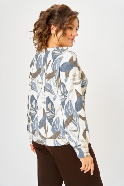 Цвет: Молочный, принт «листья в бежево-голубых тонах»