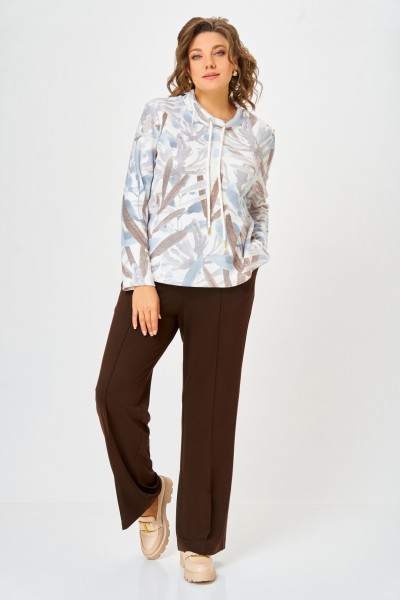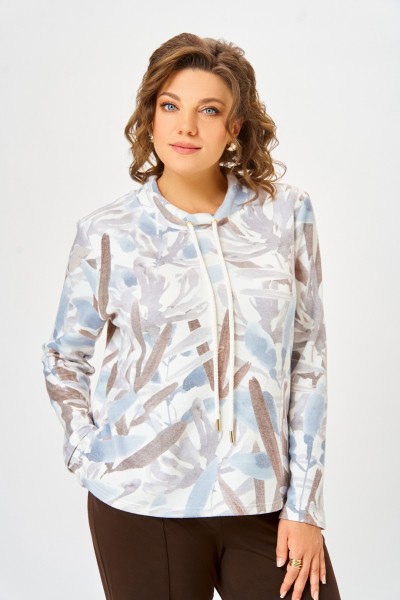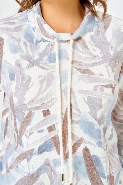 Цвет: Молочный, принт «бежево-голубые тропические листья»