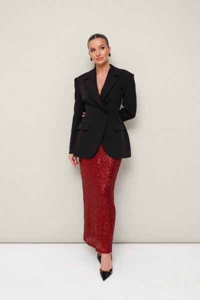 Юбка, декорированная пайетками, на подкладке. Пояс на резинке, хорошо тянется. Юбка прямого полуприлегающего силуэта.